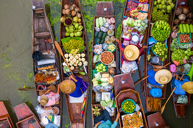 [辛・酸・塩・甘]が決め手の料理の匂い漂う街角の 屋台を巡る4日間。王宮、ワットポー等歴史を訪ね、スカイウォーク で360度のパノラマビューも体験します。